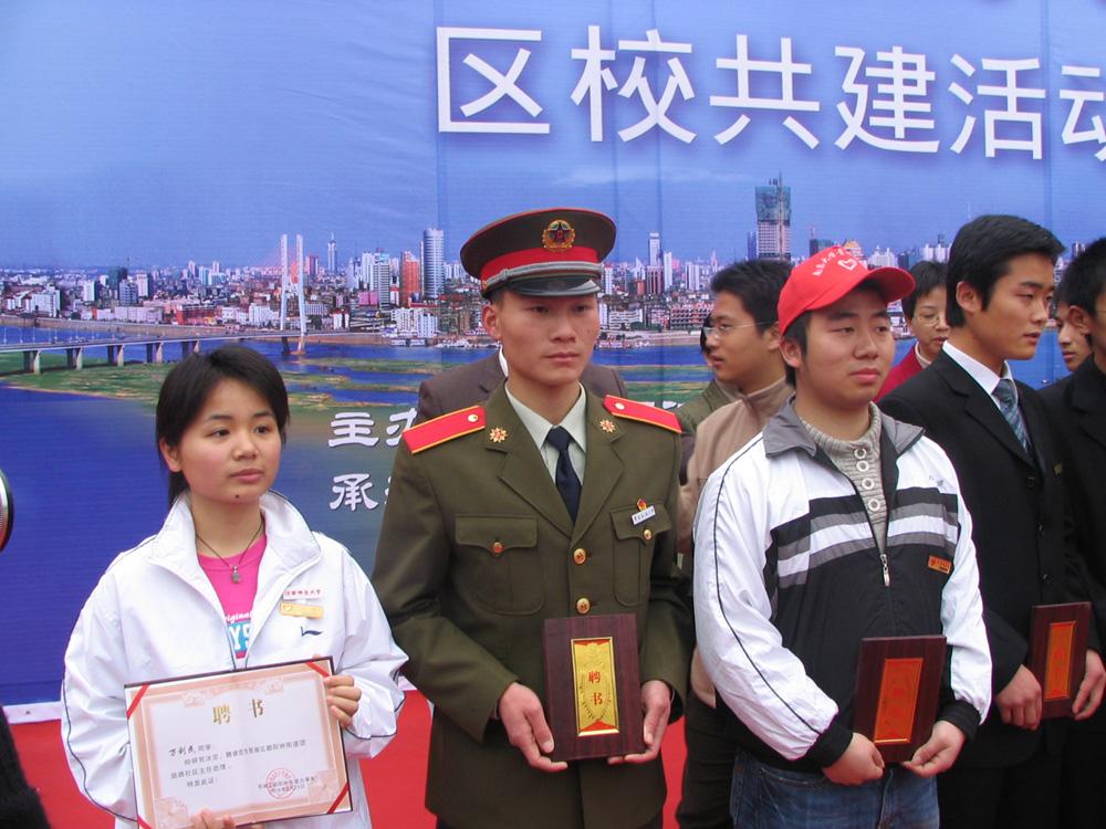 在活動現場,電氣學院與南浦街道進賢倉社區簽定了共建協議書。雙方將本著“共駐共建、資源共享、立足長遠、互惠互利”的原則, 通過“居家養老”等系列精品活動的開展,“院校送人才,社區用人才,青年長才干”,促進共建良性發展,共創和諧美好西湖。電氣學院2004級電氣6班諸衛波同學被聘為進賢倉社區主任助理。