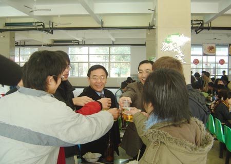 校團(tuán)委書記、學(xué)工處處長凌四寶首先帶來了春的祝福,他祝愿大家在新的一年里萬事如意,一帆風(fēng)順。校黨委副書記徐朝亮代表學(xué)校黨委致新年賀詞。他在賀詞中轉(zhuǎn)達(dá)了張安哥校長的新年問候,并向留校學(xué)子們表示了親切的慰問,同時他向全體學(xué)子的家長表示了問候。在歡快的爆竹聲中,全體到場師生共同舉杯,共慶新的一年的到來,共同祝愿在新的一年里,我校會有更大的跨越與發(fā)展。