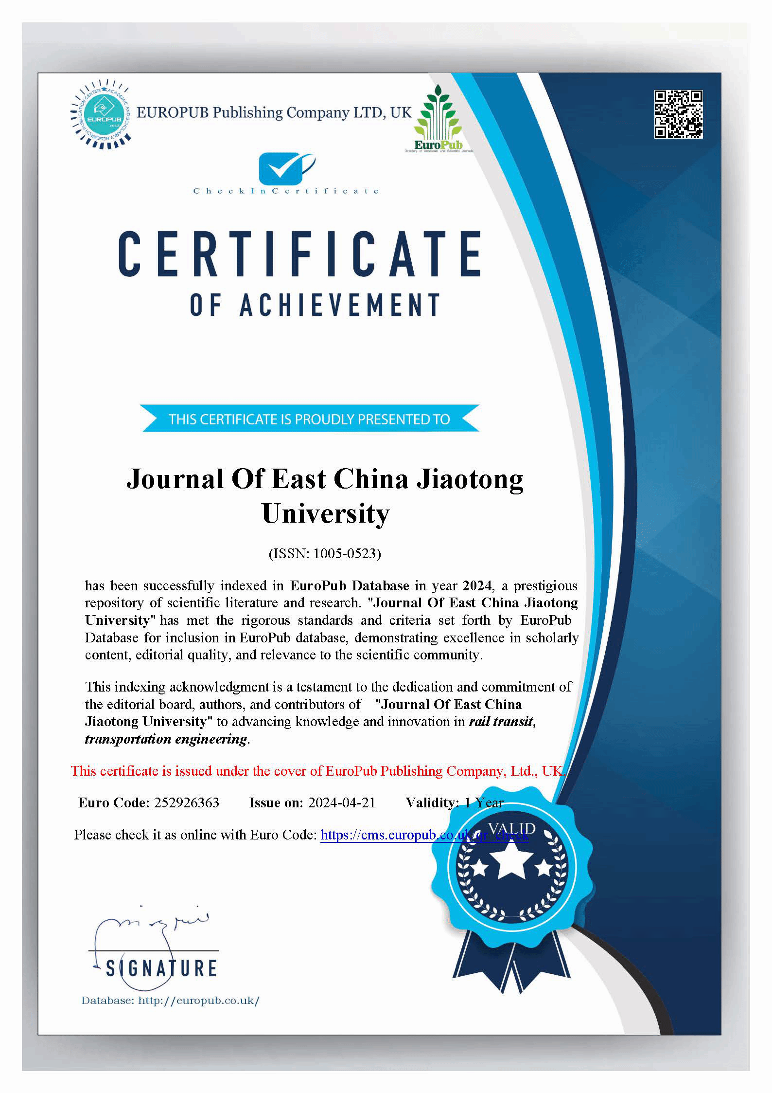 近年來,《學報》堅持國際化辦刊,積極對標國際工程領域期刊,為《學報》論文的國際化傳播創造條件。此次被EuroPub數據庫收錄,標志著學報的國際化出版實踐獲得認可,對進一步提升《學報》的國際學術影響力具有重要意義。