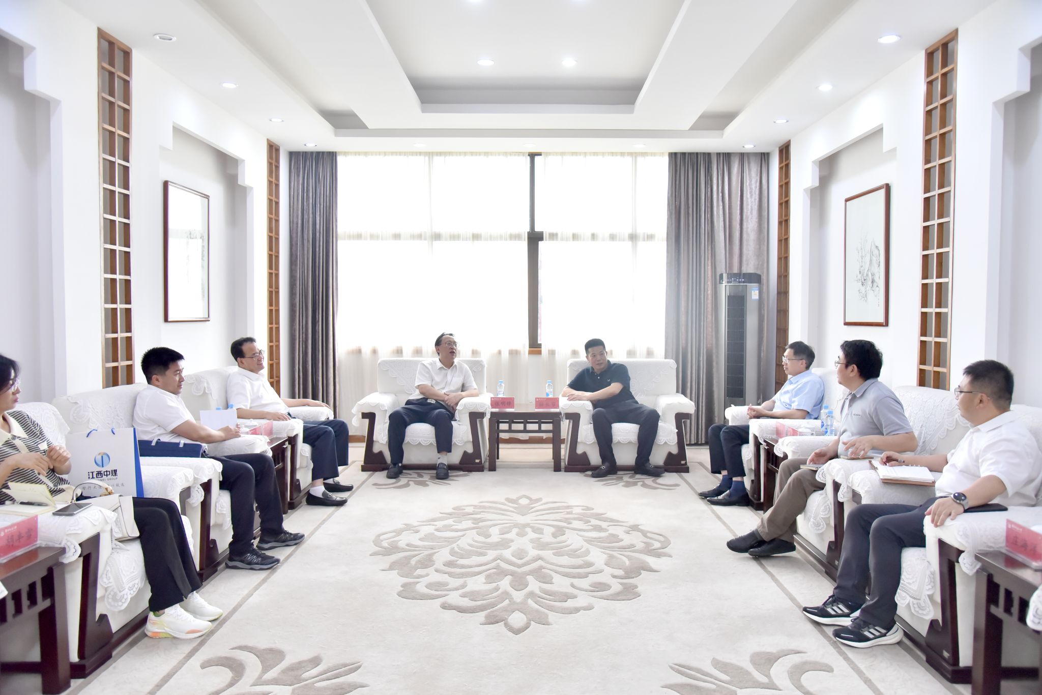 江西省地質(zhì)建設(shè)投資集團有限公司黨委委員、副董事長,江西中煤建設(shè)集團有限公司黨委書記、董事長劉中存,江西中煤建設(shè)集團有限公司黨委委員、副總經(jīng)理戴隆強等,我校科發(fā)院、基建處、土建學(xué)院、江西華大工程質(zhì)量檢測有限公司負責(zé)人參加座談。(陳君 攝)