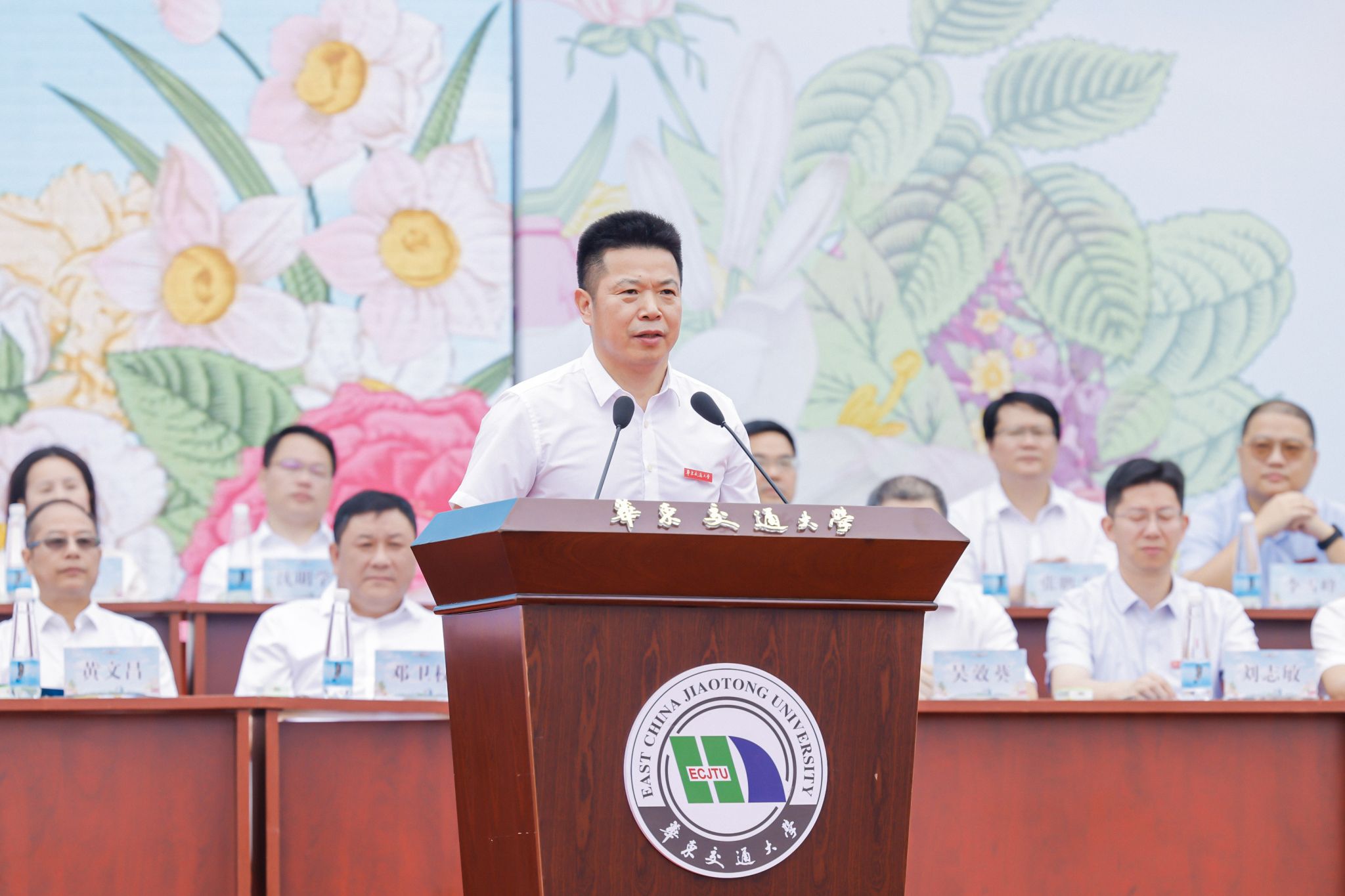 敢于綻放,活出自己的芳華。相比于“接天蓮葉無窮碧,映日荷花別樣紅”的熱烈,我更欣賞“苔花如米小,也學牡丹開”的追求。這是一種積極樂觀的生命活力,勇于突破環境的重重阻礙,綻放屬于自己的獨特光彩。未來大家的職業和崗位可能千差萬別,但每一份平凡的工作,都能創造不凡的社會價值;每一位平凡的人,都能書寫非凡的人生華章。全國勞動模范、我校88級校友鄭衛紅始終把工地當舞臺,面對全國最長上下重疊隧道的施工挑戰,她帶領團隊迎難而上,施工技術被鑒定為“國際先進水平”;全國三八紅旗手、我校09級校友程桔,放棄大城市高薪工作,回到小山村競選支書,僅用兩年多的時間就讓貧困村成為遠近聞名的美麗鄉村。接受平凡,是成長的起點;創造非凡,是逐夢的遠方。未來的日子,希望大家堅定“把每一項平凡工作做好就是不平凡”的恒心,保持“把每一件小事情做好就是大事業”的匠心,在各自崗位上兢兢業業、精益求精,創造華交人別樣的精彩。