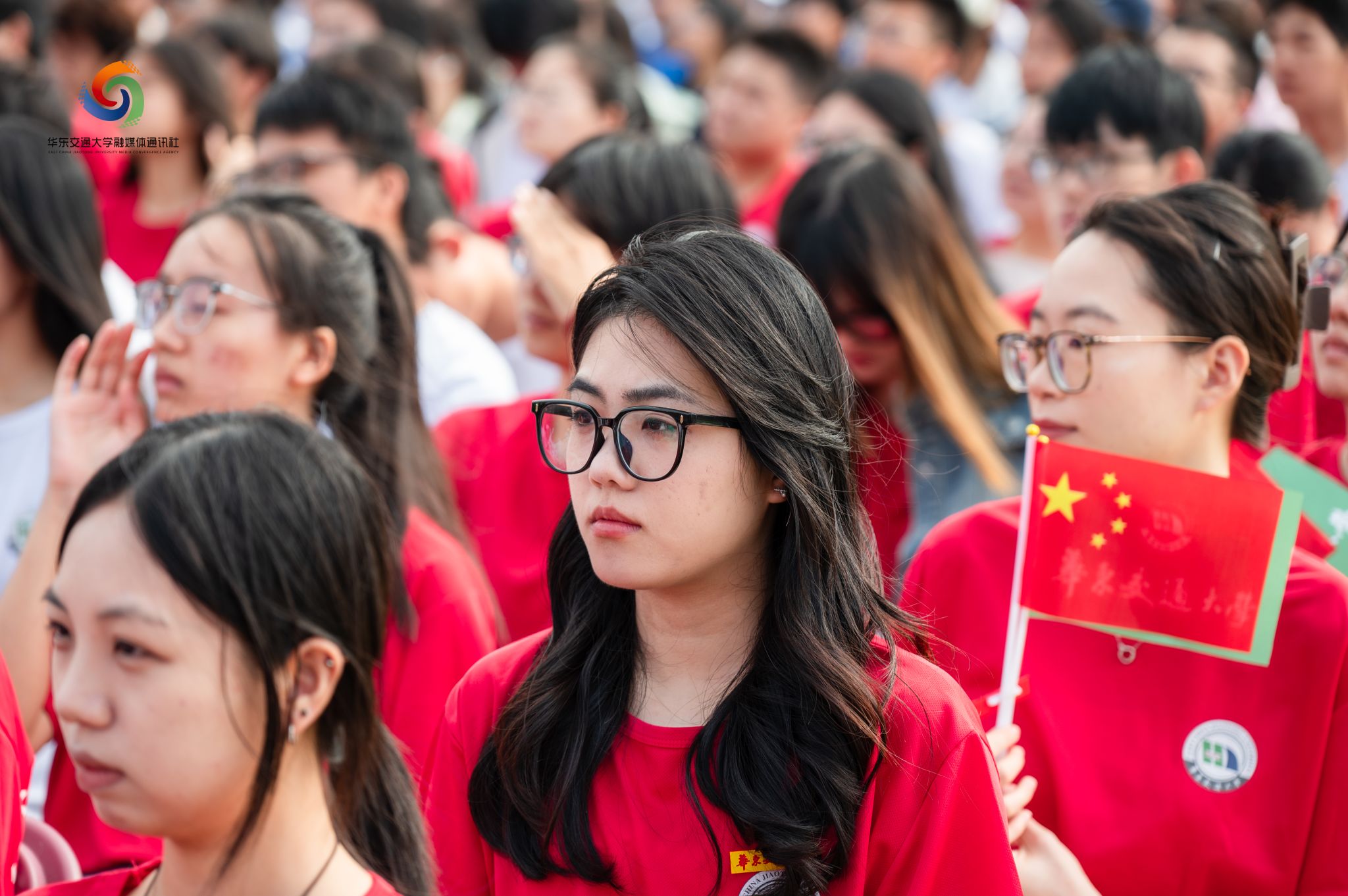 “謹(jǐn)記‘日新其德,止于至善’的校訓(xùn),秉承‘團(tuán)結(jié)、求實(shí)、創(chuàng)新、奮進(jìn)’校風(fēng)。爭(zhēng)當(dāng)‘鐵心鑄忠誠(chéng)、鐵血報(bào)家國(guó)、鐵肩擔(dān)使命、鐵手創(chuàng)大業(yè)’的新時(shí)代鐵人鐵軍!”——在典禮的高潮部分,全體新生集體宣誓,向祖國(guó)致以青春的禮贊,向華交許下青春的誓言。