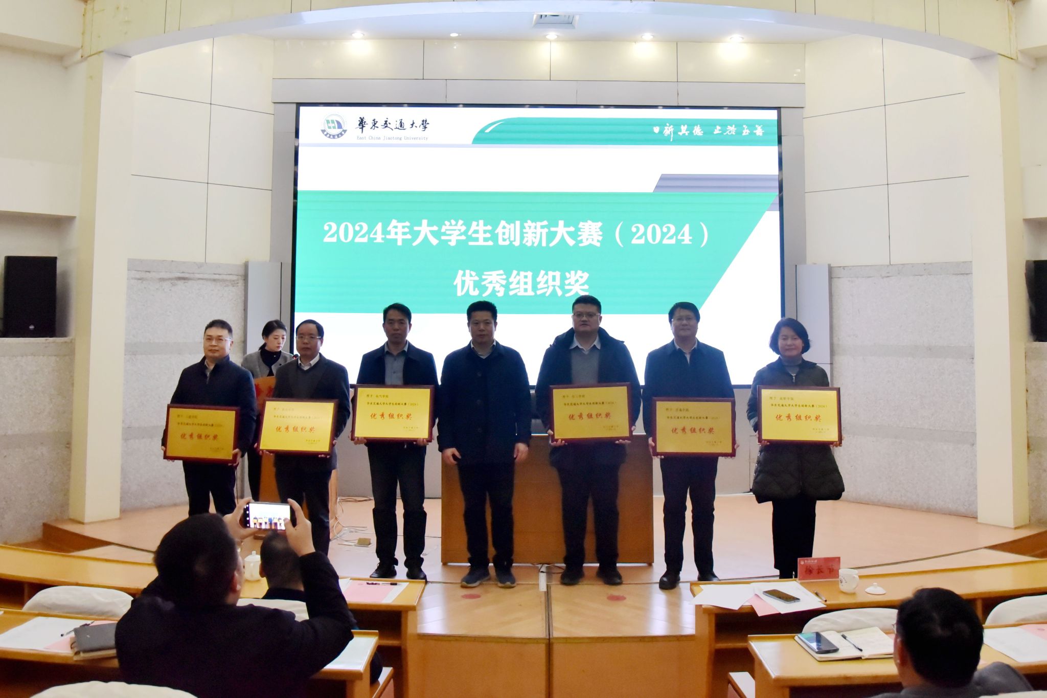 會上,徐長節、黃志超分別為高水平創新創業競賽優秀組織獎獲獎學院及創新創業教育工作先進個人頒獎。