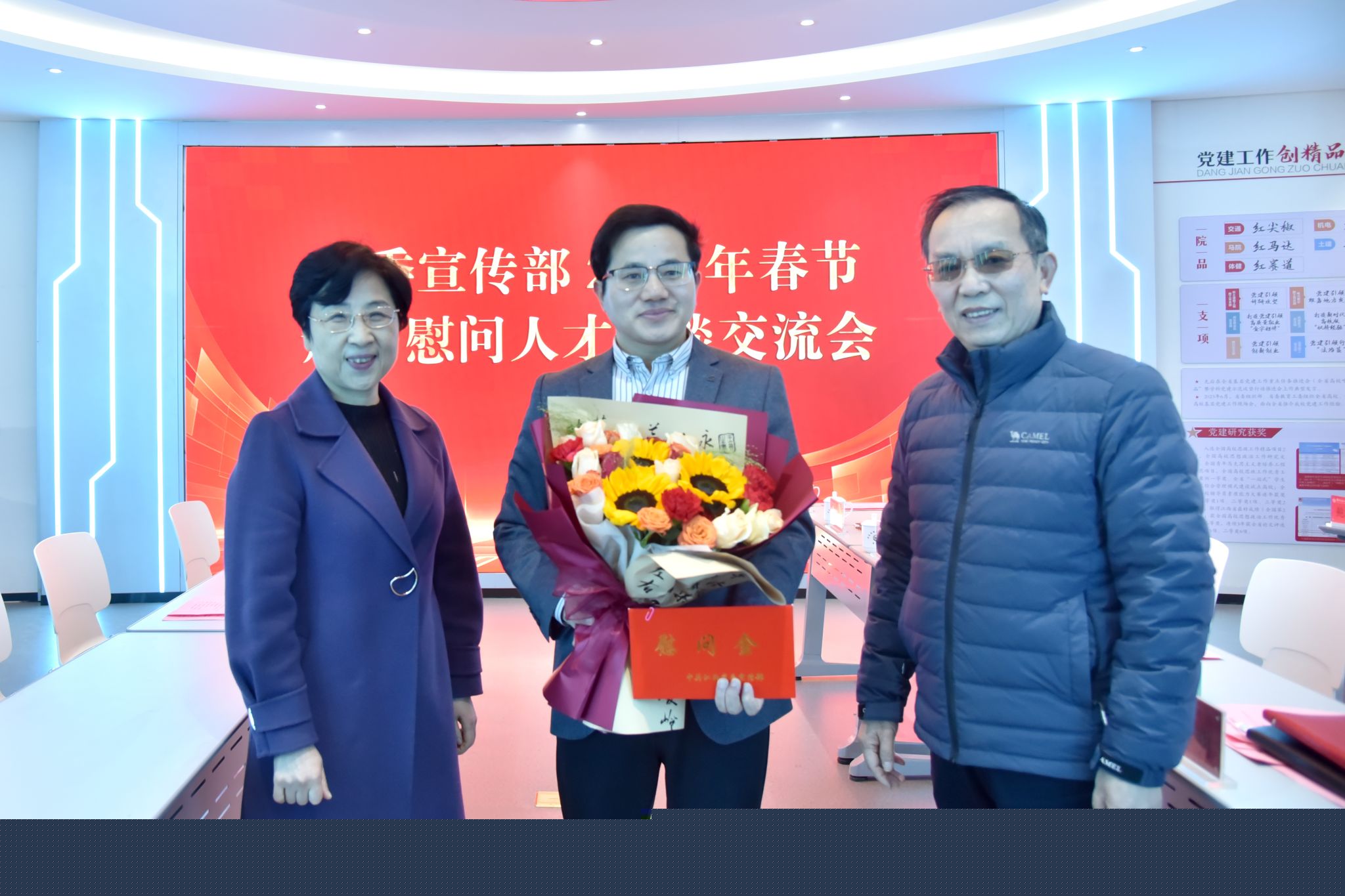 1月13日,江西省委宣傳部副部長、省文明辦主任龔建文一行來校開展春節前走訪慰問我校心理教育中心主任舒曼。校黨委書記柳和生、校黨委副書記羅文俊參加有關活動。