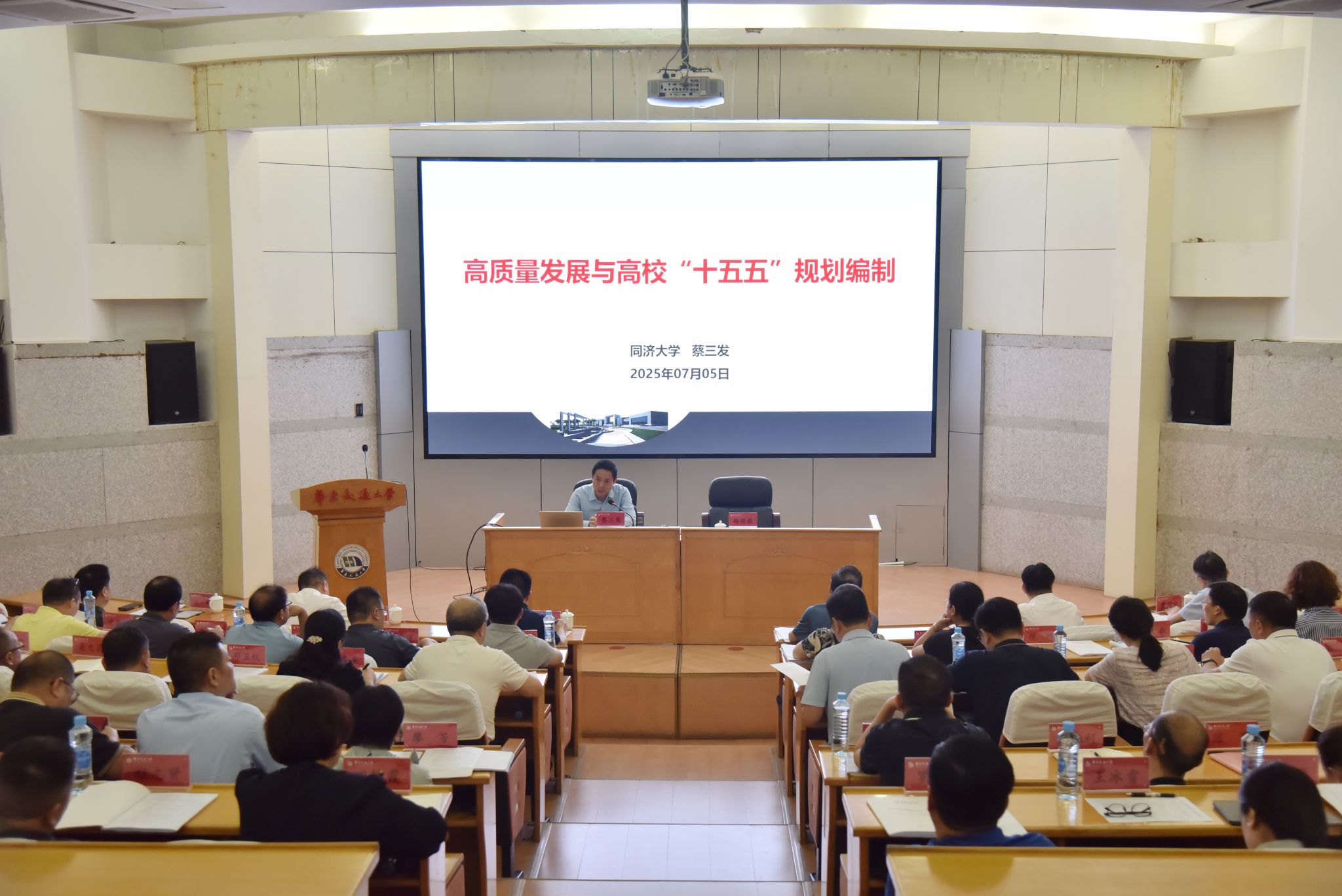 會上,同濟大學政治與國際關系學院黨委書記、高等教育研究所所長、研究員、博士生導師蔡三發作《高質量發展與高校“十五五”規劃編制》專題講座。校黨委委員、副校長楊德敏總結“十四五”規劃完成情況,并解讀學校“十五五”規劃編制工作方案。宣傳部、教務處、研究生院、科發院、人事處、土建學院、交通學院、經管學院分別匯報了“十四五”規劃完成情況和“十五五”規劃編制設想。各小組就《學校“十五五”規劃編制工作方案》、學校“十五五”發展規劃及專項規劃提綱等進行分組討論,并匯報討論情況。