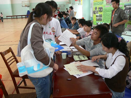有了志愿者的陪同,新生能很快辦理完所有的入學手續,但是很多新生和家長都很想從老師口中得到一些關于學校、學院、專業等具體情況的介紹,為此人文學院06級的專職輔導員和助理輔導員也都坐陣迎新現場,隨時解答新生及家長的疑問。記者在現場也看到了06級專職輔導員師星老師忙碌的身影,新生家長一個接一個過來找她詢問,她總是面帶微笑的耐心地回答。由于新生剛到校,對一切都很陌生,所以學院另外還設立了助理輔導員,每個專業都有一位的助理輔導員,幫助新生解決在生活上、心理上遇到的一些困難。