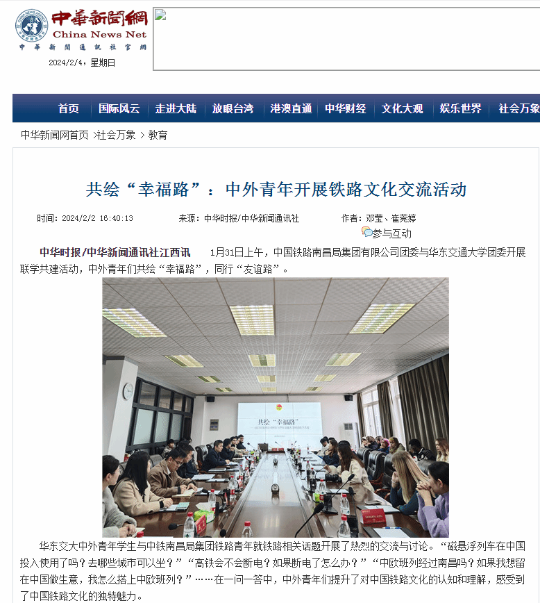 1月31日上午,中國鐵路南昌局集團有限公司團委與華東交通大學團委開展聯學共建活動,中外青年們共繪“幸福路”,同行“友誼路”。