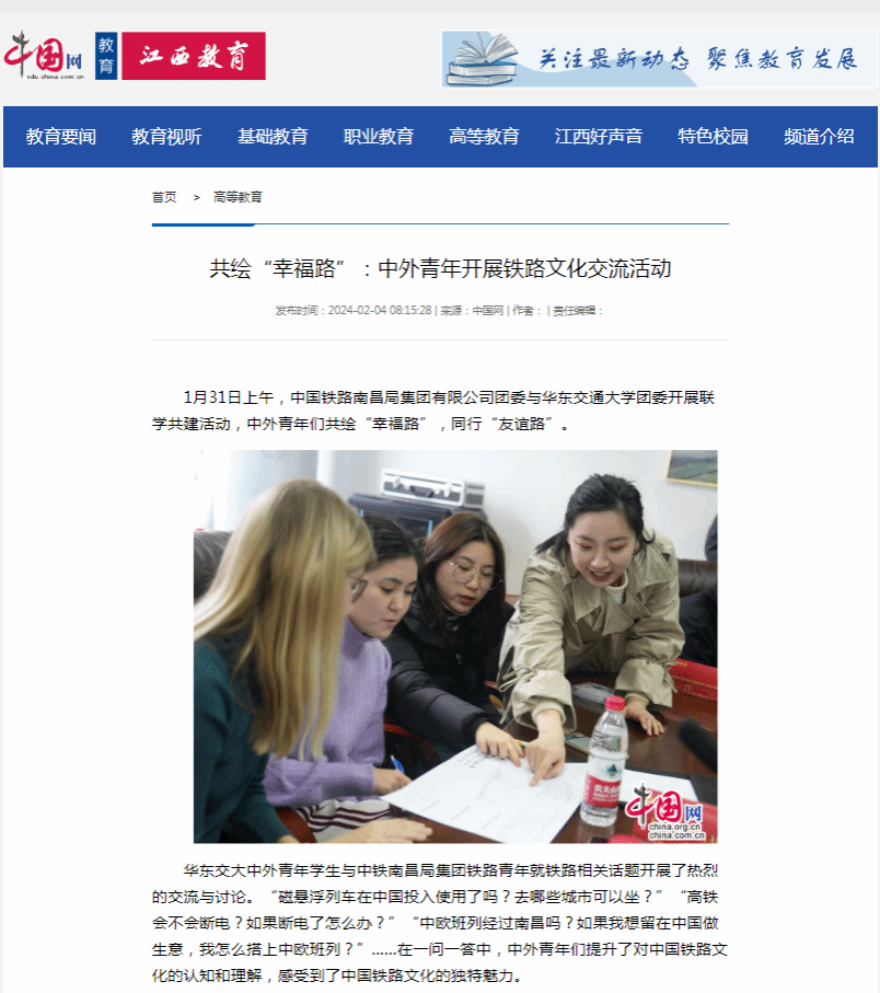 1月31日上午,中國鐵路南昌局集團有限公司團委與華東交通大學團委開展聯學共建活動,中外青年們共繪“幸福路”,同行“友誼路”。