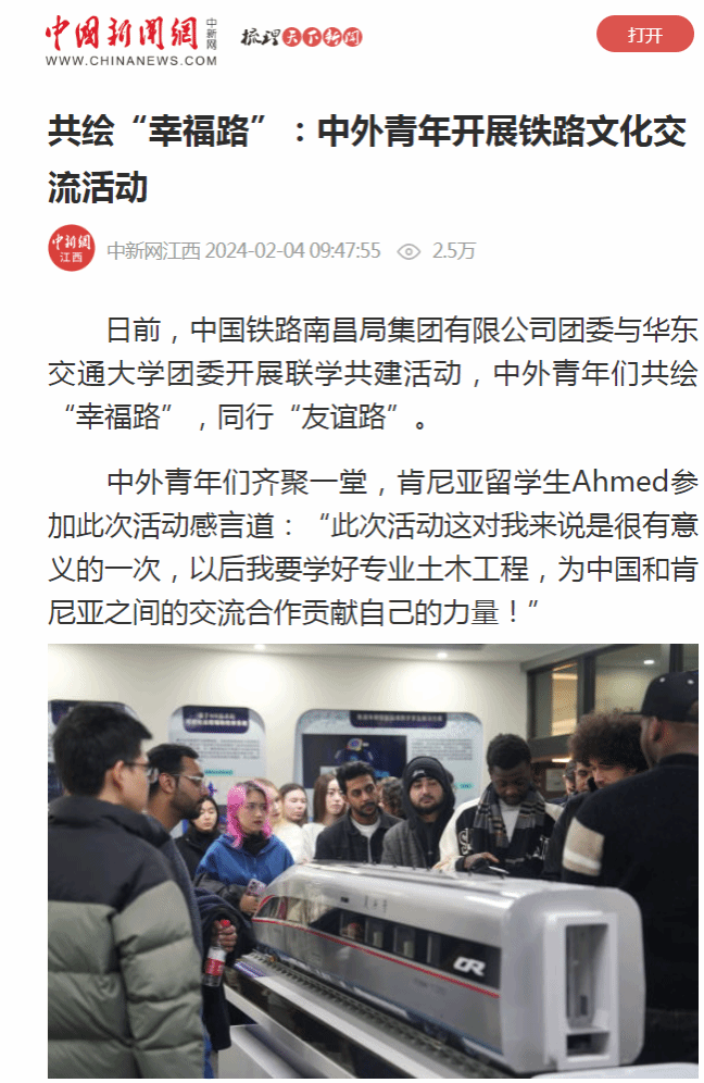 日前,中國鐵路南昌局集團有限公司團委與華東交通大學團委開展聯學共建活動,中外青年們共繪“幸福路”,同行“友誼路”。