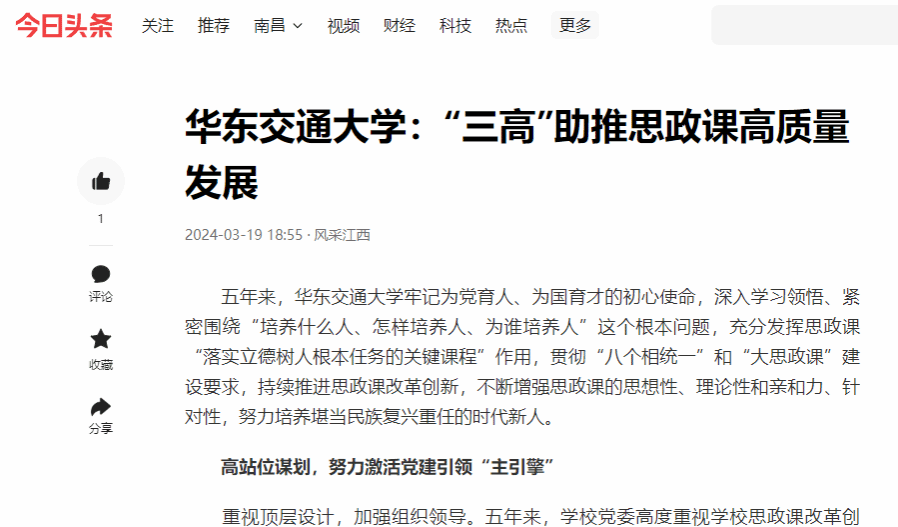 五年來,華東交通大學(xué)牢記為黨育人、為國(guó)育才的初心使命,深入學(xué)習(xí)領(lǐng)悟、緊密圍繞“培養(yǎng)什么人、怎樣培養(yǎng)人、為誰培養(yǎng)人”這個(gè)根本問題,充分發(fā)揮思政課“落實(shí)立德樹人根本任務(wù)的關(guān)鍵課程”作用,貫徹“八個(gè)相統(tǒng)一”和“大思政課”建設(shè)要求,持續(xù)推進(jìn)思政課改革創(chuàng)新,不斷增強(qiáng)思政課的思想性、理論性和親和力、針對(duì)性,努力培養(yǎng)堪當(dāng)民族復(fù)興重任的時(shí)代新人。