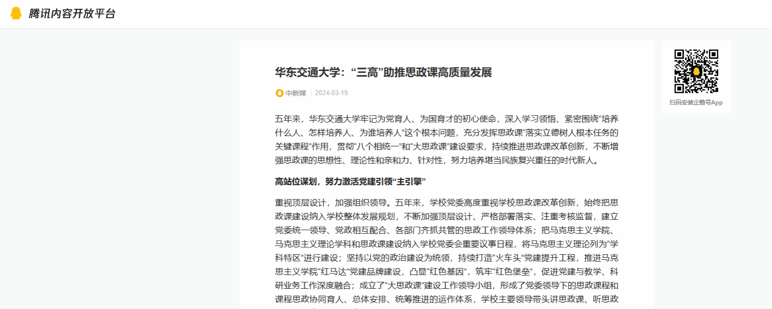 規范課程標準,做好課程建設“必答題”。五年來,聚焦《高等學校思想政治理論課建設標準(2021年本)》要求,學校持續對標對表,以一流課程建設引領思政課建設:聚焦打造“金課”,淘汰“水課”的建設目標,科學構建“必修+選修”“基礎+提升”“線上+線下”“理論+實踐”的本碩博階段性、貫通式、遞進式的課程體系,形成了全目標融入培養方案、全方位進入教學體系、全環節納入培養要求的建設思路;不斷推動思政課教學改革創新,圍繞教學理念、教學內容、教學形式、教學方法、教學載體“五個維度”,獲批了省級思政課“名師工作室”——劉波名師工作室,打造教學科研共同體,構建了課堂教學+實踐教學+網絡新媒體教學“三位一體”立體課堂教學新模式。