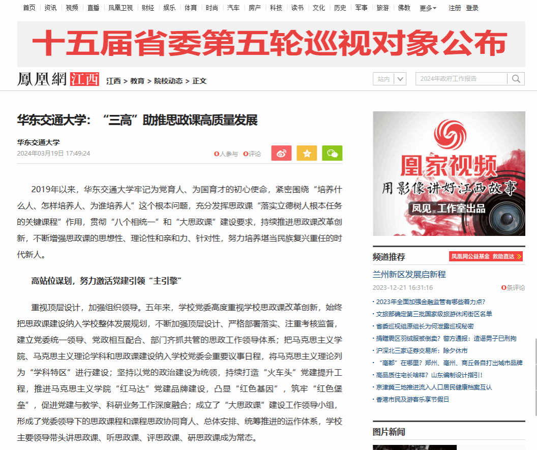 2019年以來,華東交通大學牢記為黨育人、為國育才的初心使命,緊密圍繞“培養什么人、怎樣培養人、為誰培養人”這個根本問題,充分發揮思政課“落實立德樹人根本任務的關鍵課程”作用,貫徹“八個相統一”和“大思政課”建設要求,持續推進思政課改革創新,不斷增強思政課的思想性、理論性和親和力、針對性,努力培養堪當民族復興重任的時代新人。