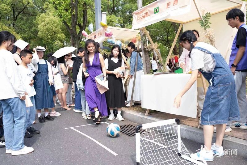 校園主干道兩旁,22個(gè)國(guó)家展位依次排開(kāi)。體驗(yàn)漢服試穿、K-POP歌曲跟跳、海娜手繪,購(gòu)買馬來(lái)西亞榴梿糖、巴西咖啡、印度咖喱、摩洛哥薄荷綠茶……大家聚焦在各個(gè)展位前,體驗(yàn)著不同國(guó)家的文化,“一日環(huán)游世界”,盡覽各國(guó)風(fēng)采。