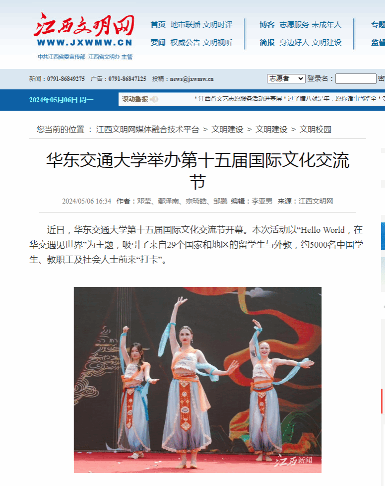 近年來(lái),華東交通大學(xué)不斷拓展國(guó)際合作新區(qū),講好交流互鑒故事,持續(xù)深化國(guó)際交流合作,提升學(xué)校國(guó)際影響力。2023年,成功獲批多項(xiàng)教育部中外語(yǔ)言交流合作中心項(xiàng)目,“中國(guó)鐵建俄羅斯有限公司中文工坊項(xiàng)目”為歐洲地區(qū)獲批的唯一一家、交通領(lǐng)域獲批的第一家;獲批首個(gè)國(guó)家留學(xué)基金委創(chuàng)新型人才國(guó)家合作培養(yǎng)項(xiàng)目、教育部“海外線上學(xué)分課”項(xiàng)目及“國(guó)家外國(guó)專家項(xiàng)目”;承辦了2023國(guó)際產(chǎn)學(xué)研用合作會(huì)議、中韓青少年友好交流活動(dòng),圓滿完成友城柬埔寨暹粒省外賓接待任務(wù)及“滕王閣與吳哥窟:跨越千年的對(duì)話”暨紀(jì)念江西省與柬埔寨暹粒省締結(jié)友城10周年聯(lián)袂文藝匯演;新增與澳大利亞西澳大學(xué)等24所高校校際合作協(xié)議,與澳門大學(xué)、葡萄牙里斯本大學(xué)、俄羅斯烏法科技大學(xué)等高校開(kāi)展交換生項(xiàng)目。(鄧瑩、鄢澤南、宗琦皓、鄒鵬)