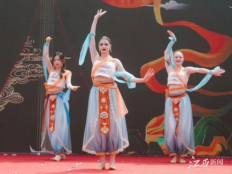 民族舞蹈《絲路幻影》中,來(lái)自俄羅斯的交換生和該校國(guó)際學(xué)院學(xué)生共同演繹敦煌古典舞,美麗的舞姿讓人如癡如醉?!半m然文化背景不同,但我們對(duì)美的感悟、對(duì)中國(guó)文化的喜愛(ài)是相同的?!痹撔?guó)際學(xué)院學(xué)生邱梓婕說(shuō)道。在學(xué)習(xí)舞蹈前,俄羅斯交換生伊麗娜特意去學(xué)習(xí)了“絲綢之路”的歷史。
