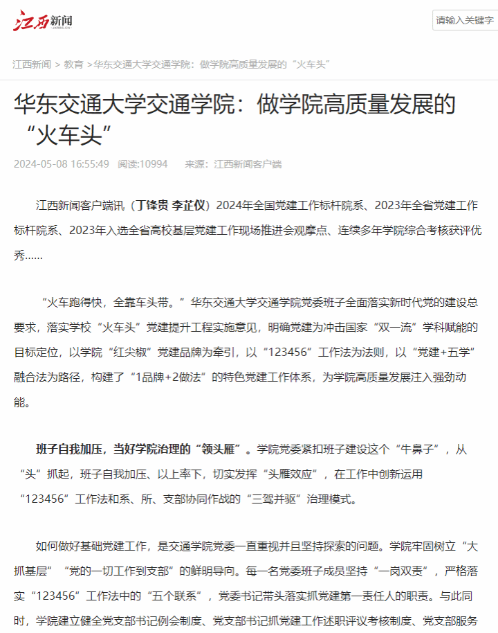 【江西新聞】華東交通大學交通學院:做學院高質量發展的“火車頭”