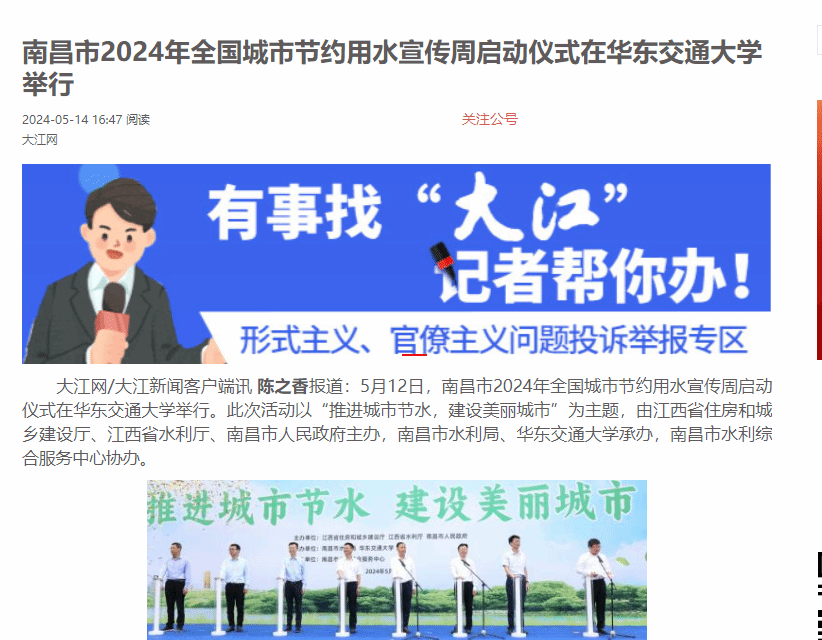 南昌市2024年全國城市節約用水宣傳周啟動儀式在華東交通大學舉行