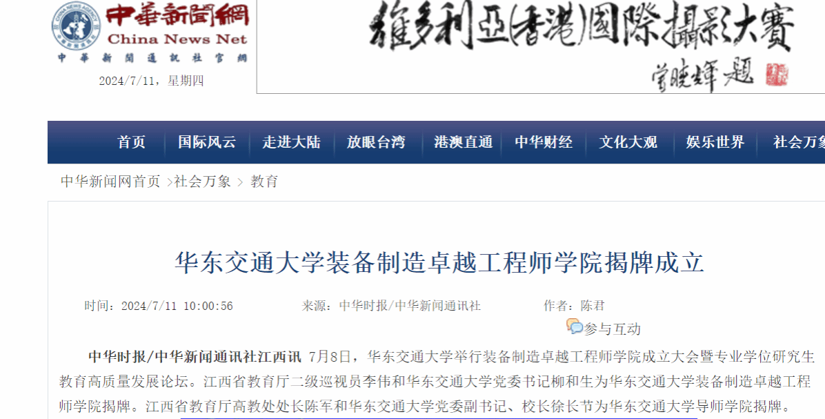 7月8日,華東交通大學舉行裝備制造卓越工程師學院成立大會暨專業學位研究生教育高質量發展論壇。江西省教育廳二級巡視員李偉和華東交通大學黨委書記柳和生為華東交通大學裝備制造卓越工程師學院揭牌。江西省教育廳高教處處長陳軍和華東交通大學黨委副書記、校長徐長節為華東交通大學導師學院揭牌。