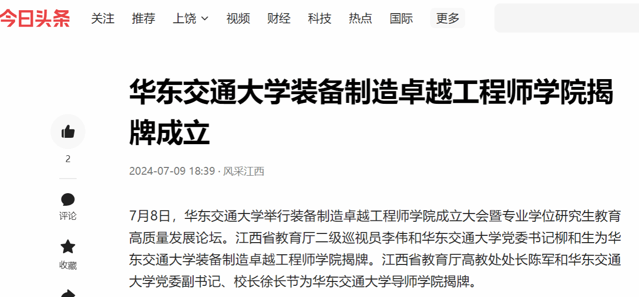 7月8日,華東交通大學舉行裝備制造卓越工程師學院成立大會暨專業學位研究生教育高質量發展論壇。江西省教育廳二級巡視員李偉和華東交通大學黨委書記柳和生為華東交通大學裝備制造卓越工程師學院揭牌。江西省教育廳高教處處長陳軍和華東交通大學黨委副書記、校長徐長節為華東交通大學導師學院揭牌。