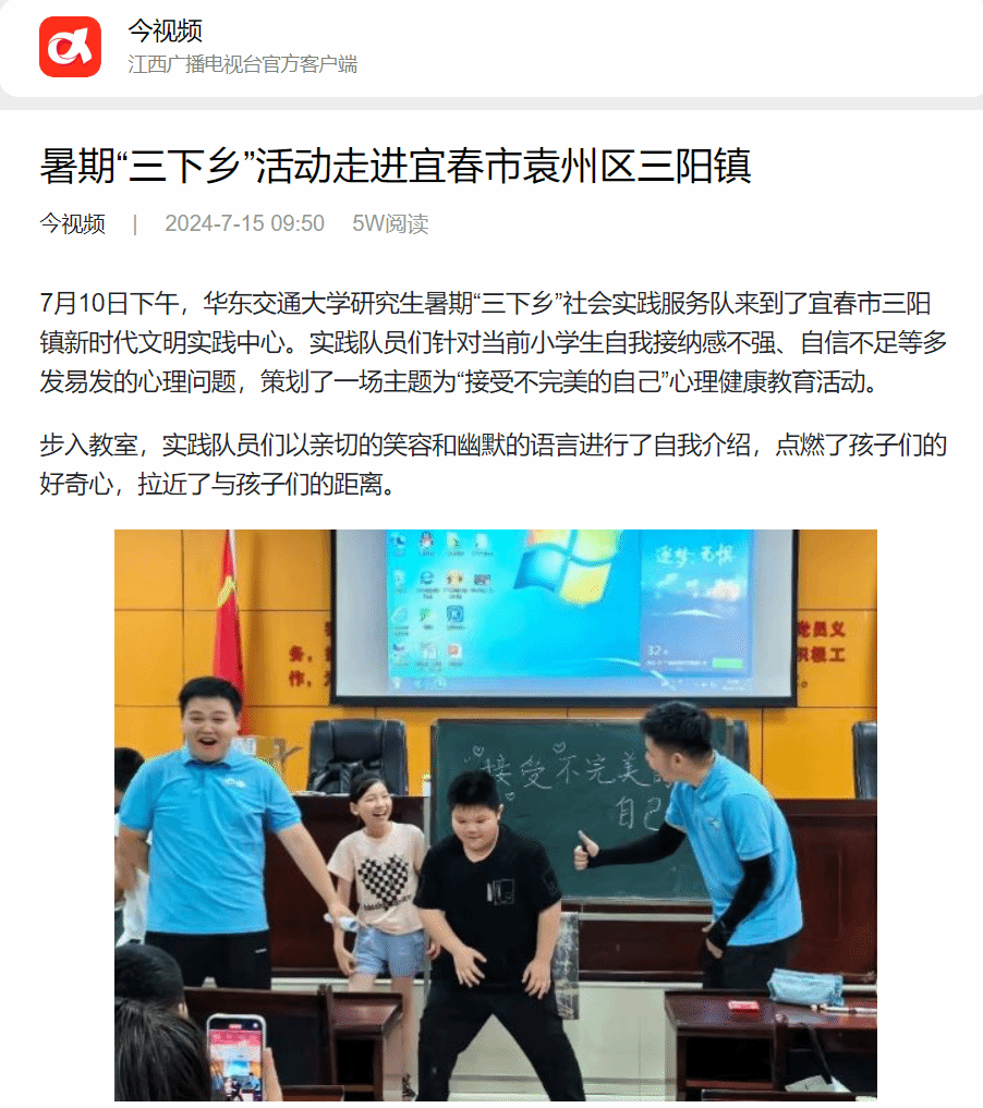 暑期“三下鄉”活動走進宜春市袁州區三陽鎮 - 今視頻 (jxgdw.com)