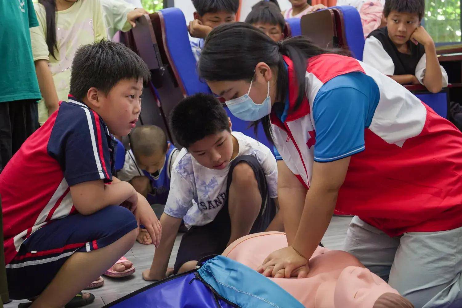 實(shí)踐團(tuán)“紅十字隊(duì)”隊(duì)員們還為孩子們上了一堂繪聲繪色的“急救實(shí)踐課”。隊(duì)員們通過理論講解和實(shí)踐操作,為當(dāng)?shù)氐暮⒆觽兤占傲诵姆螐?fù)蘇、創(chuàng)傷處理、止血包扎等急救技能,在他們的心中種下一顆“防災(zāi)減災(zāi)”的種子。