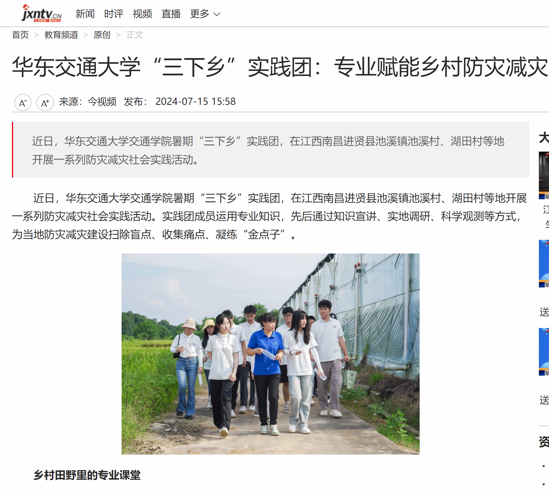 近日,華東交通大學(xué)交通學(xué)院暑期“三下鄉(xiāng)”實(shí)踐團(tuán),在江西南昌進(jìn)賢縣池溪鎮(zhèn)池溪村、湖田村等地開展一系列防災(zāi)減災(zāi)社會實(shí)踐活動。實(shí)踐團(tuán)成員運(yùn)用專業(yè)知識,先后通過知識宣講、實(shí)地調(diào)研、科學(xué)觀測等方式,為當(dāng)?shù)胤罏?zāi)減災(zāi)建設(shè)掃除盲點(diǎn)、收集痛點(diǎn)、凝練“金點(diǎn)子”。