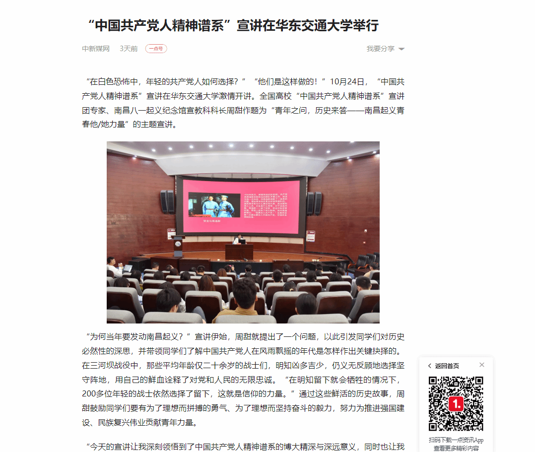 【中新媒網】 “中國共產黨人精神譜系”宣講在華東交通大學舉行