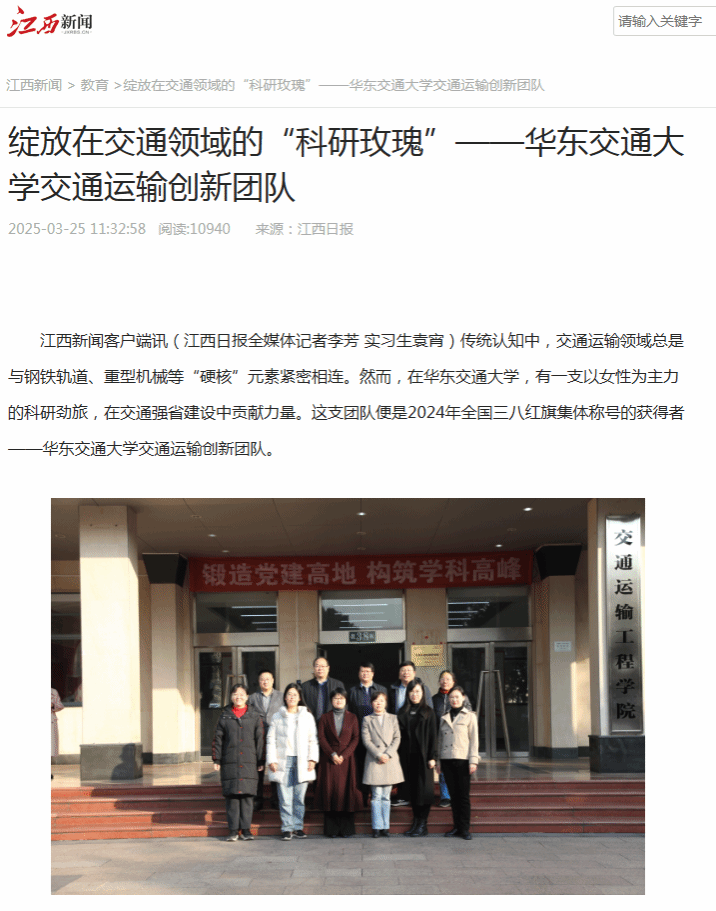 傳統(tǒng)認(rèn)知中,交通運輸領(lǐng)域總是與鋼鐵軌道、重型機械等“硬核”元素緊密相連。然而,在華東交通大學(xué),有一支以女性為主力的科研勁旅,在交通強省建設(shè)中貢獻力量。這支團隊便是2024年全國三八紅旗集體稱號的獲得者——華東交通大學(xué)交通運輸創(chuàng)新團隊。